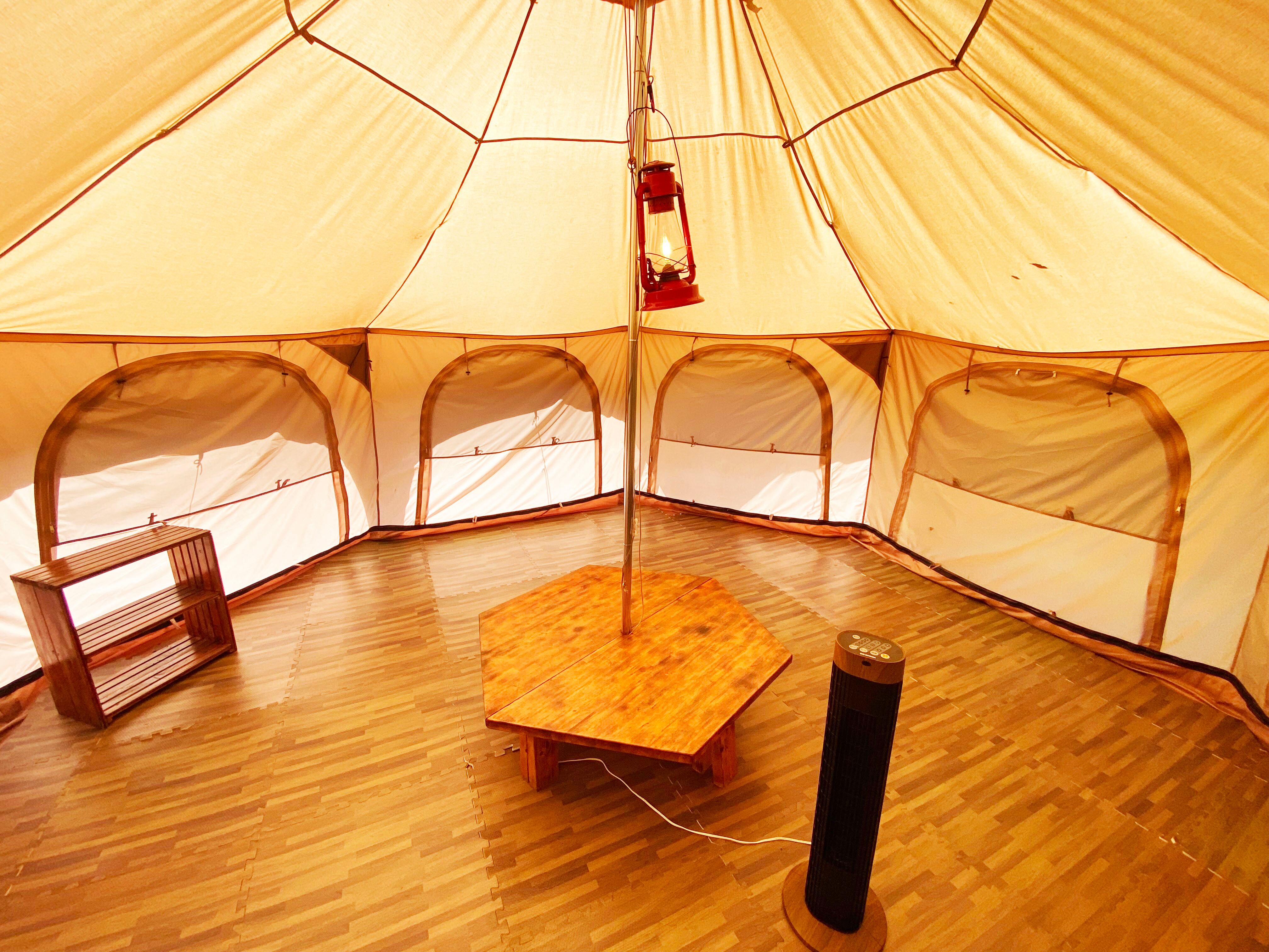 直径5m大型ベルテント(電源・暖房設備付・定員8名)